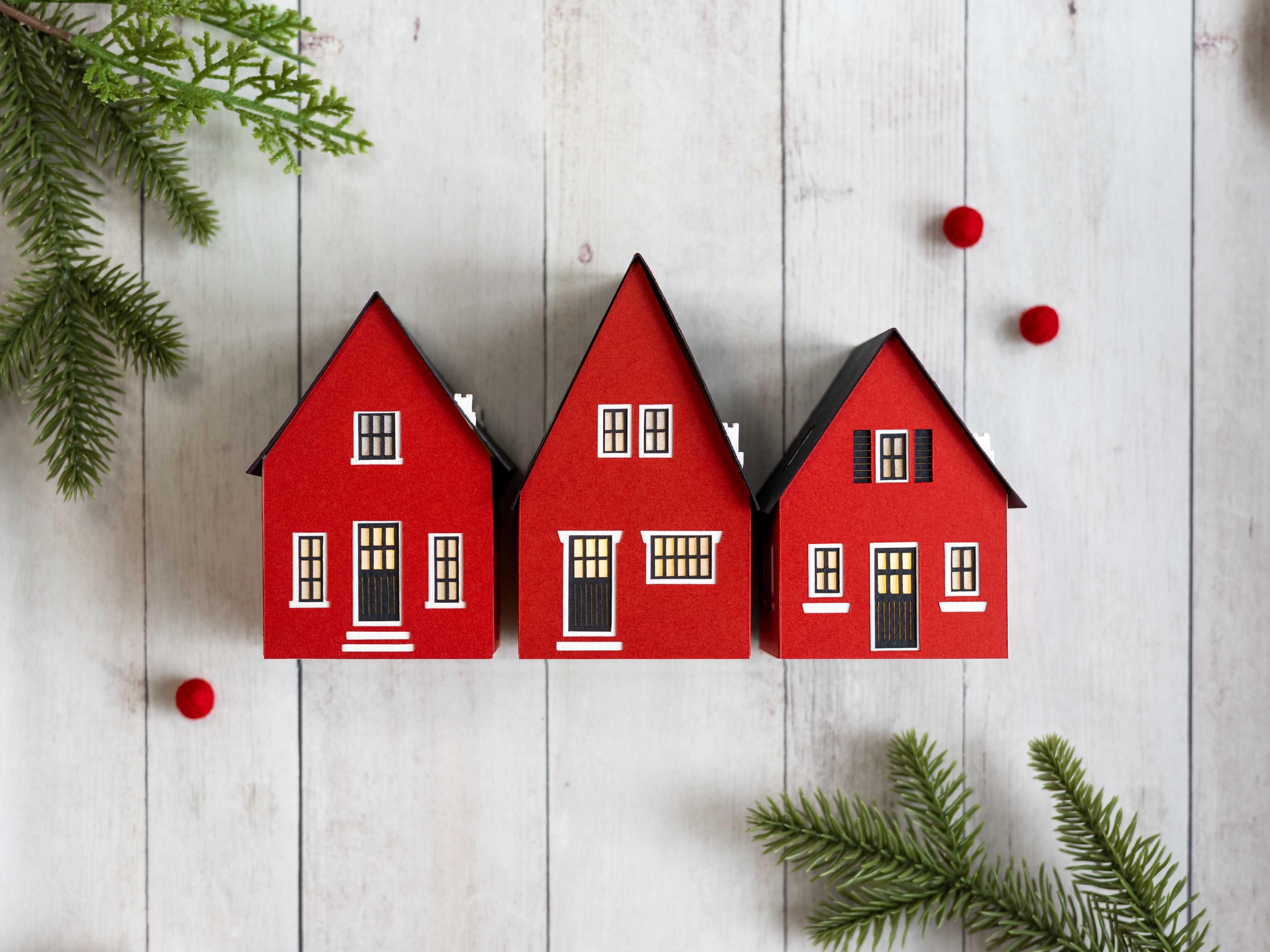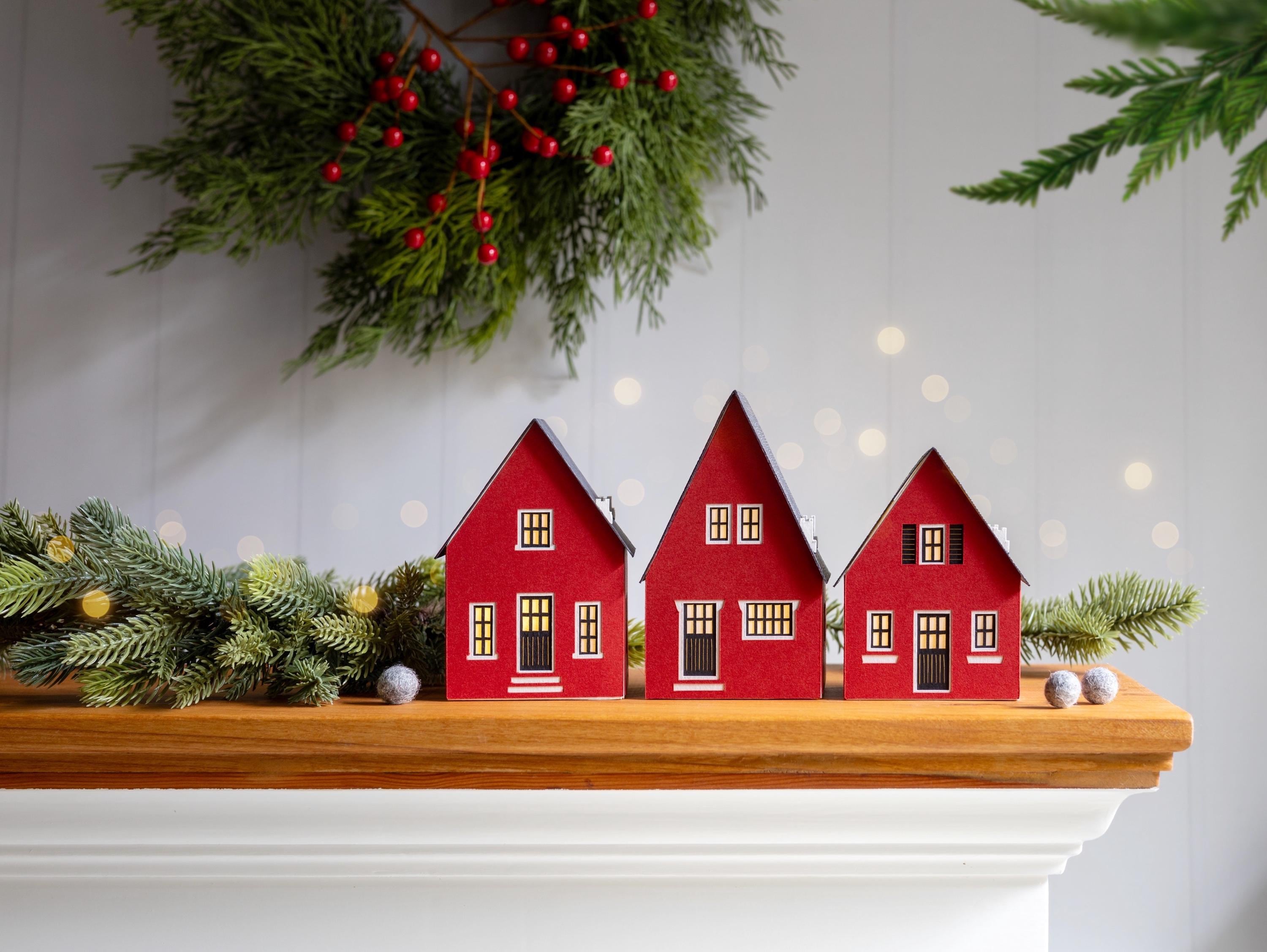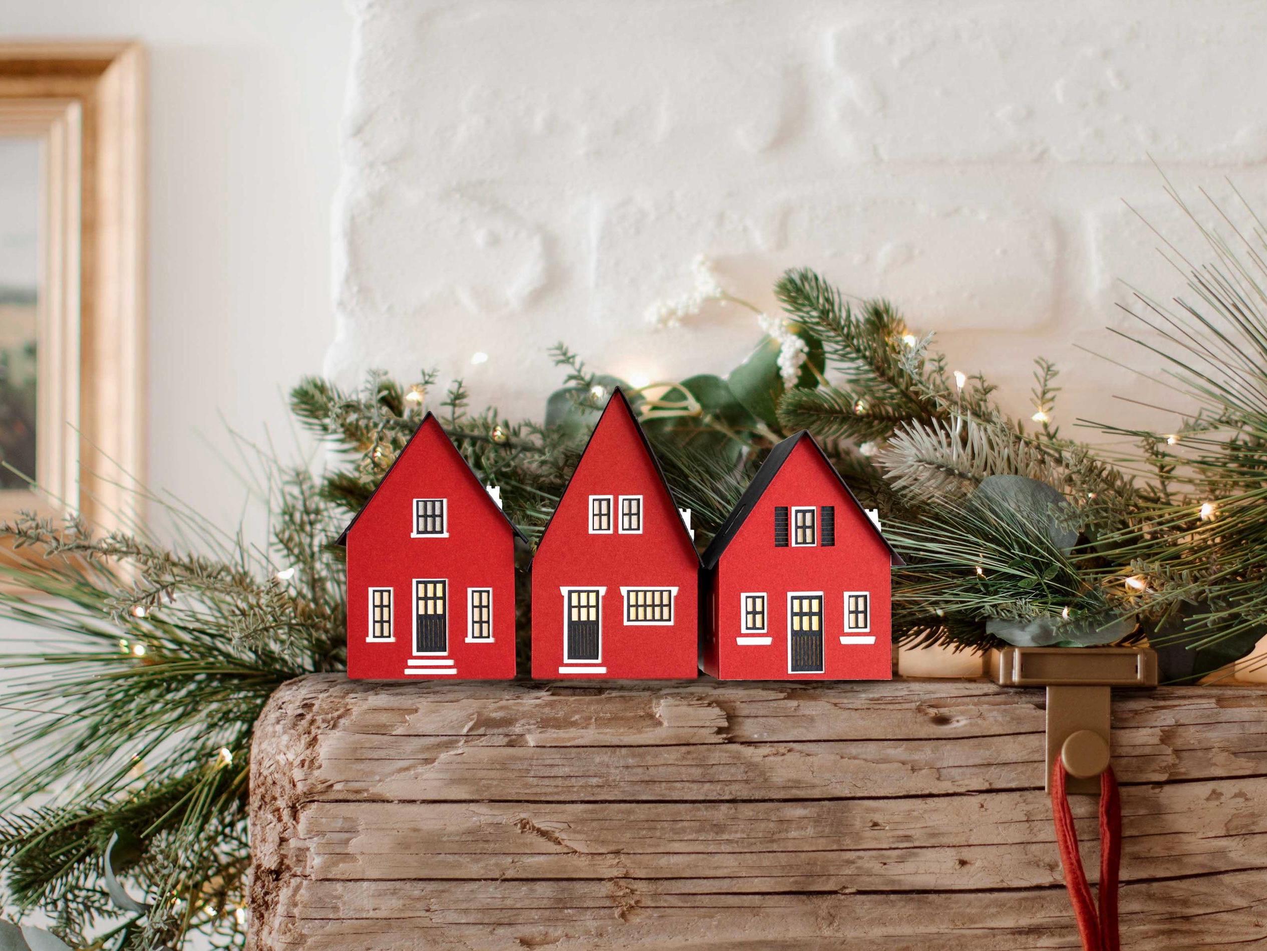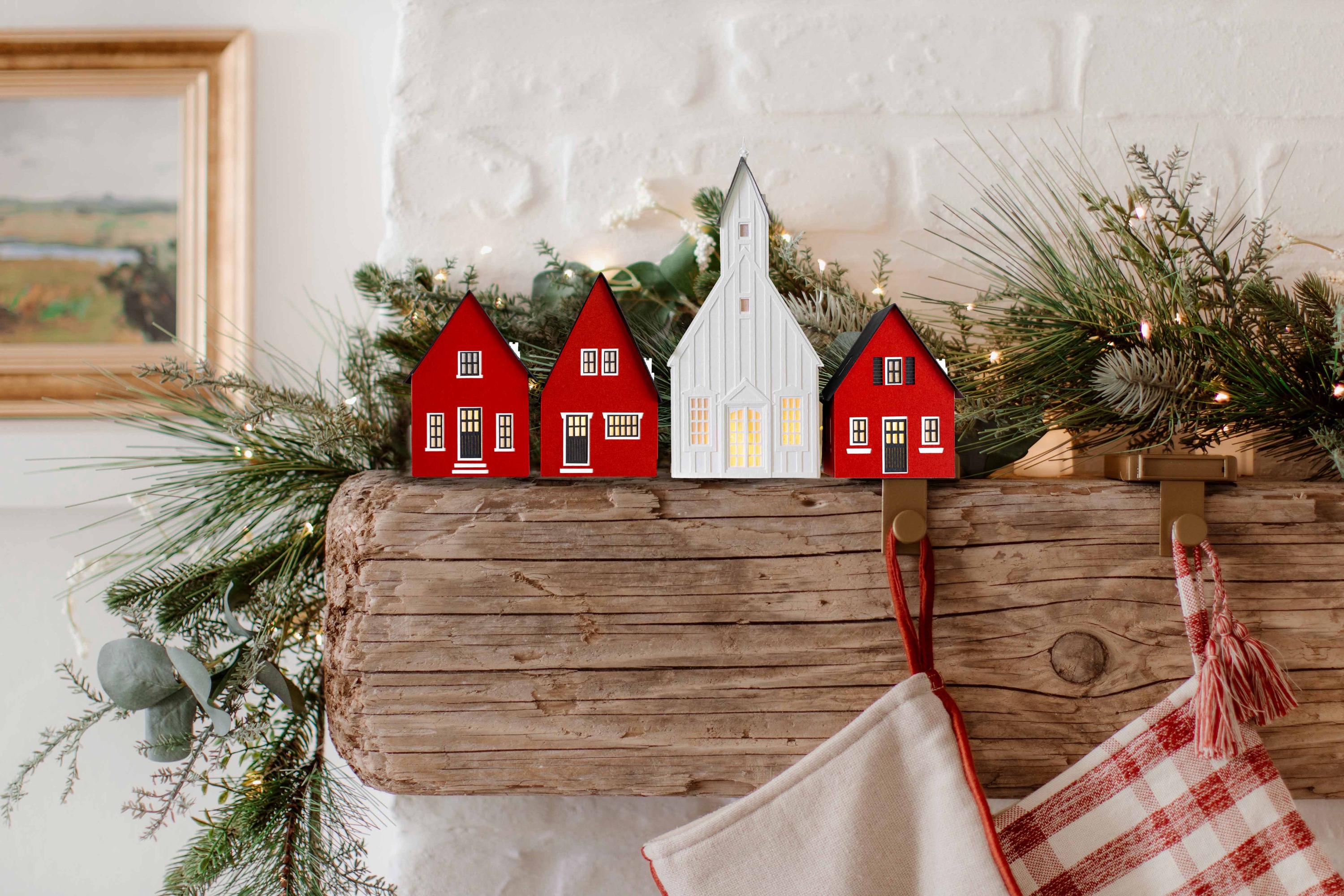 Inspired by cozy Scandinavian cottages, this handcrafted paper luminary set includes three tealight houses in traditional colors, with a Nordic church available to complete the scene. Best of all, the entire village folds perfectly flat, so you can tuck it away in seconds and your post-holiday cleanup is done. So simple!