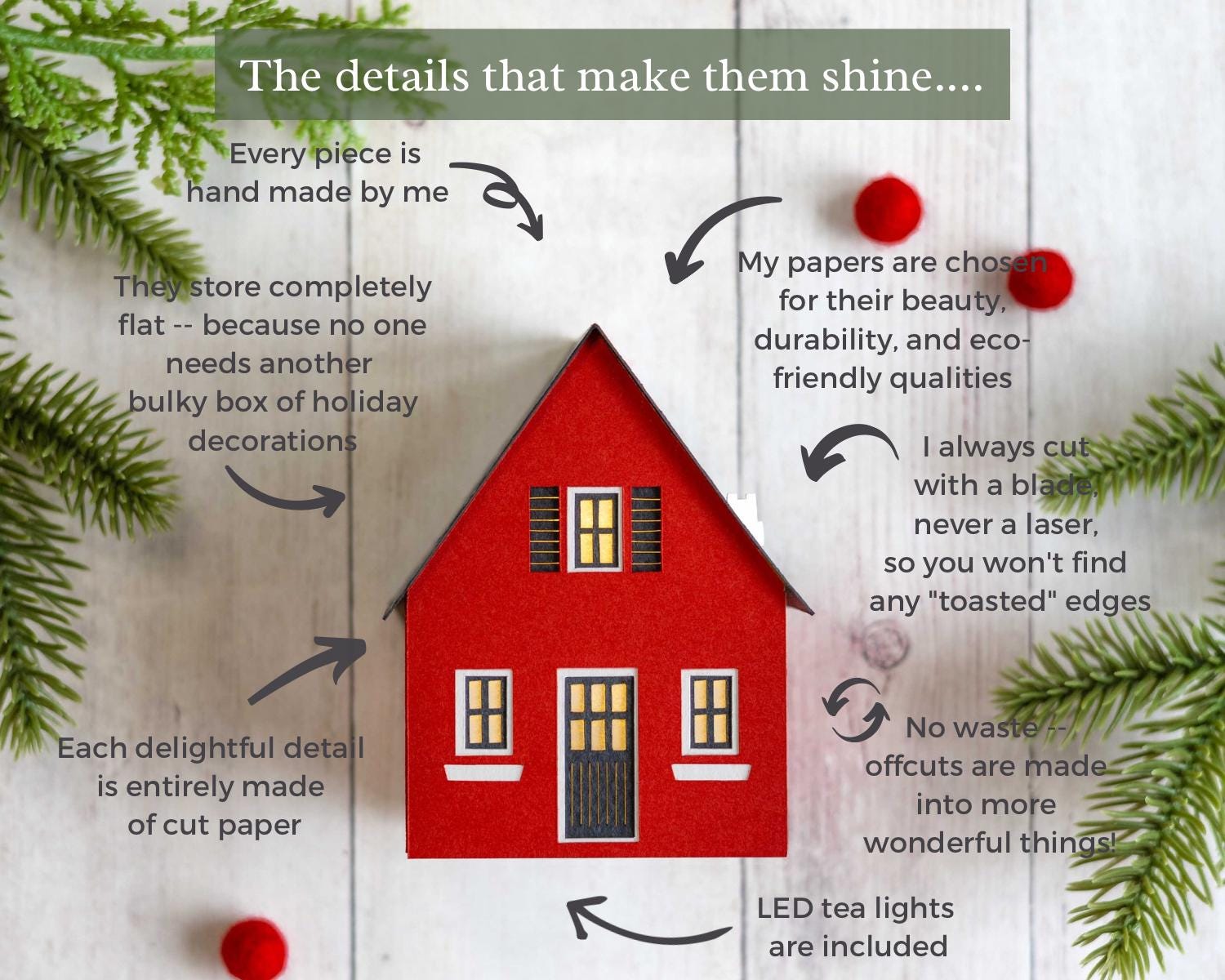 My commitment to sustainability starts with my studio, which runs on geothermal power, and continues with archival-quality paper sourced from eco-conscious mills. To ensure that no resource goes to waste, I transform my offcuts into sweet Christmas ornaments. And finally, my luminaries’ ability to fold flat reduces their environmental impact by requiring less packaging and fewer resources to ship.