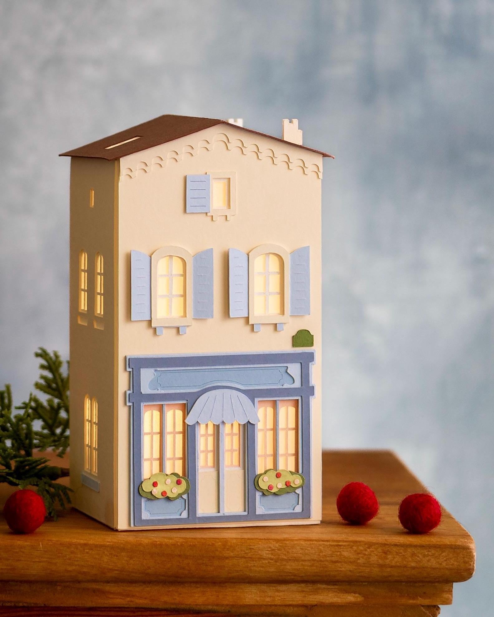 A lovely addition to a Belgian Paperworks Christmas village, this piece was inspired by my favorite chocolate shop, tucked in the hills of Southern France.