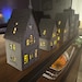 Three of the luminary houses are highly detailed, while the others are more modern. You'll find bats and black cats, glowing shutters, brickwork, Gothic arches, and Victorian bargeboards. Once-grand windows have been hastily boarded up, and even the roofs, with their wood-grain texture, are designed to delight. All made of paper, of course.