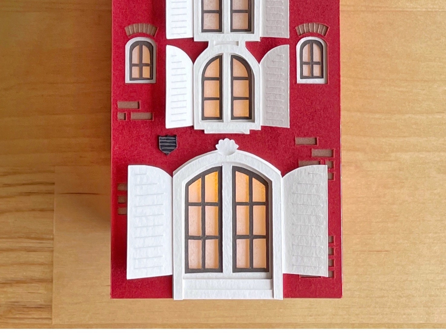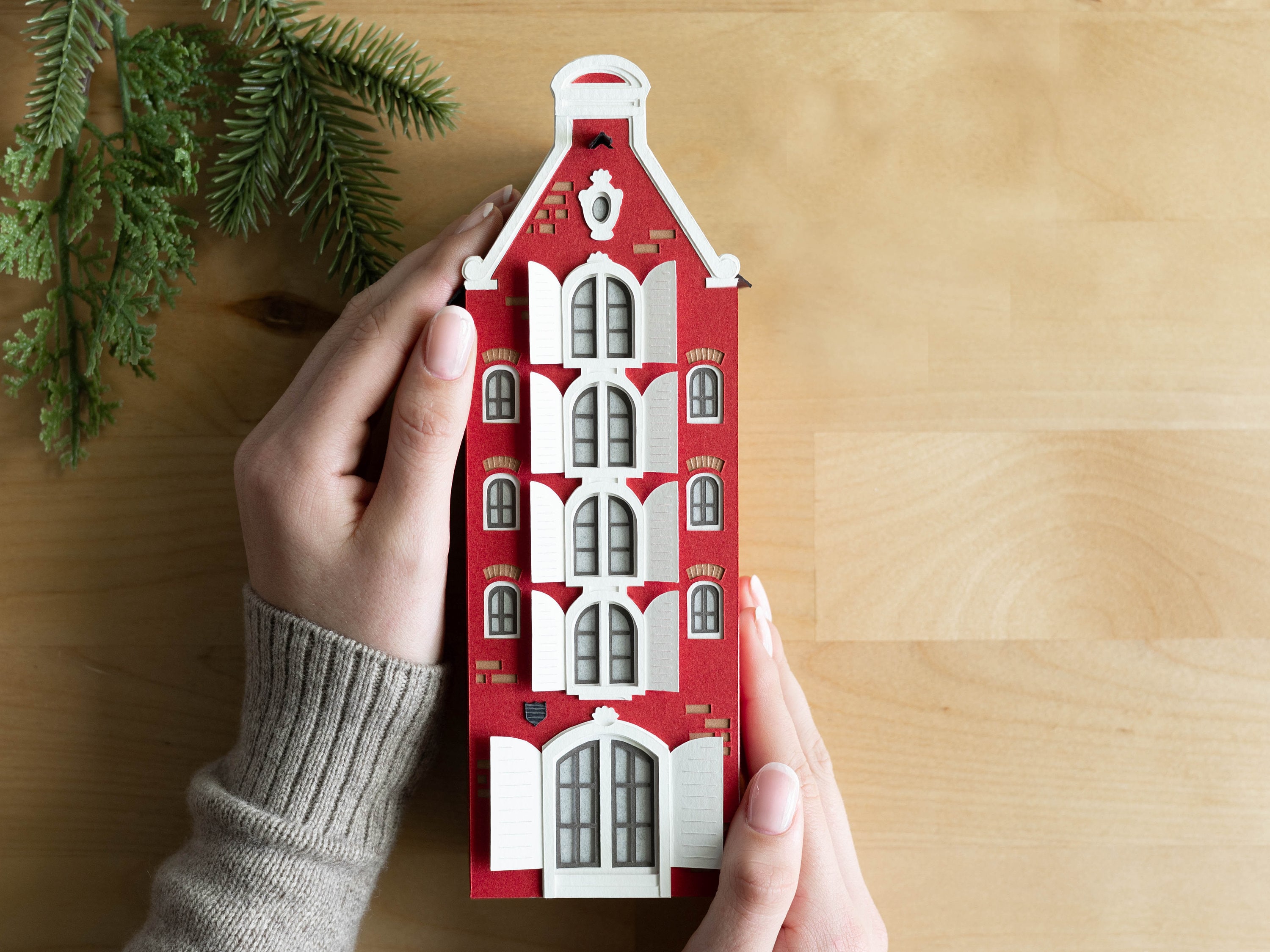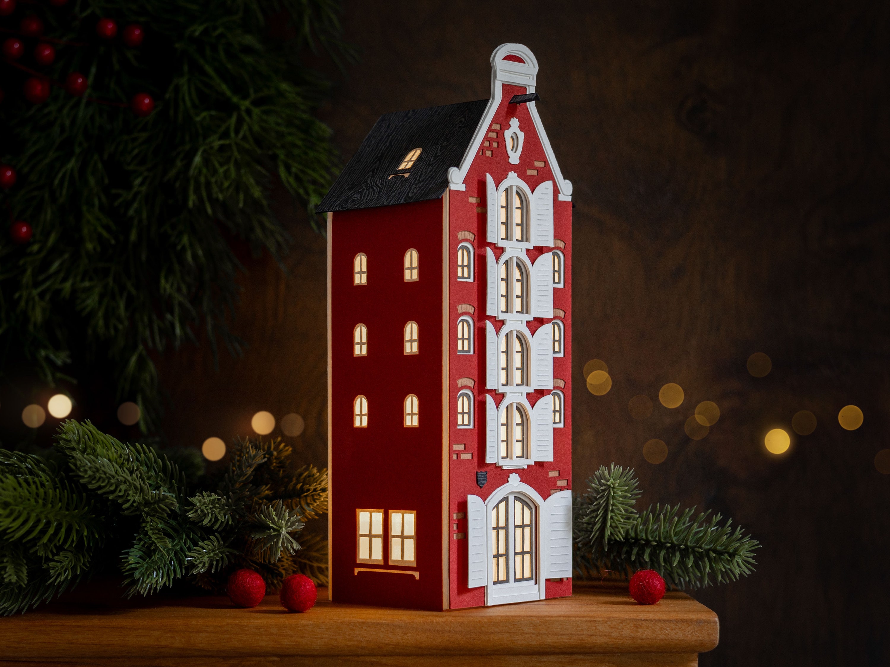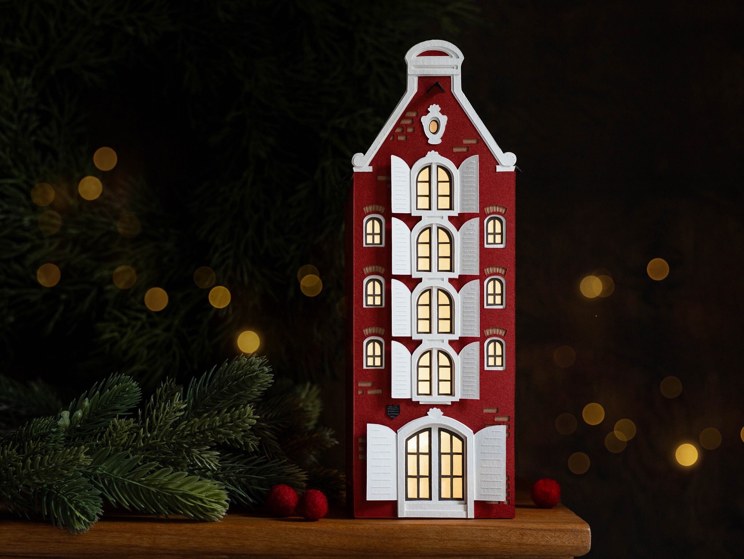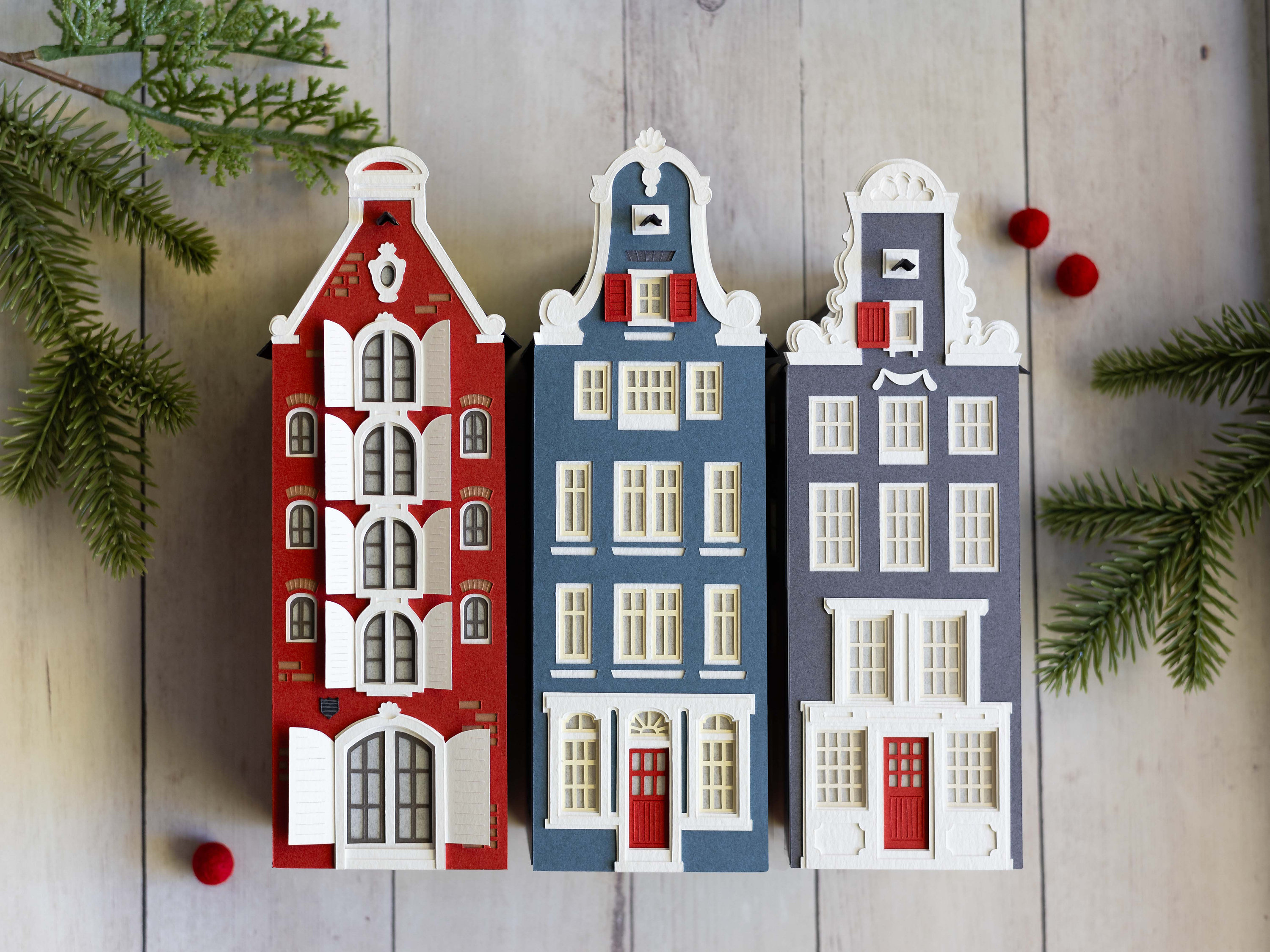 Bring the beauty of Amsterdam's canals to your home with this handcrafted paper luminary. Layers of meticulously cut, acid-free paper create the charming details of these elegant and iconic buildings. At 8" tall, it's perfectly sized to sit on a mantel, shelf, or windowsill. Lovely when grouped with my other paper luminaries, or a statement piece all on its own. Perfect for gifting, too.