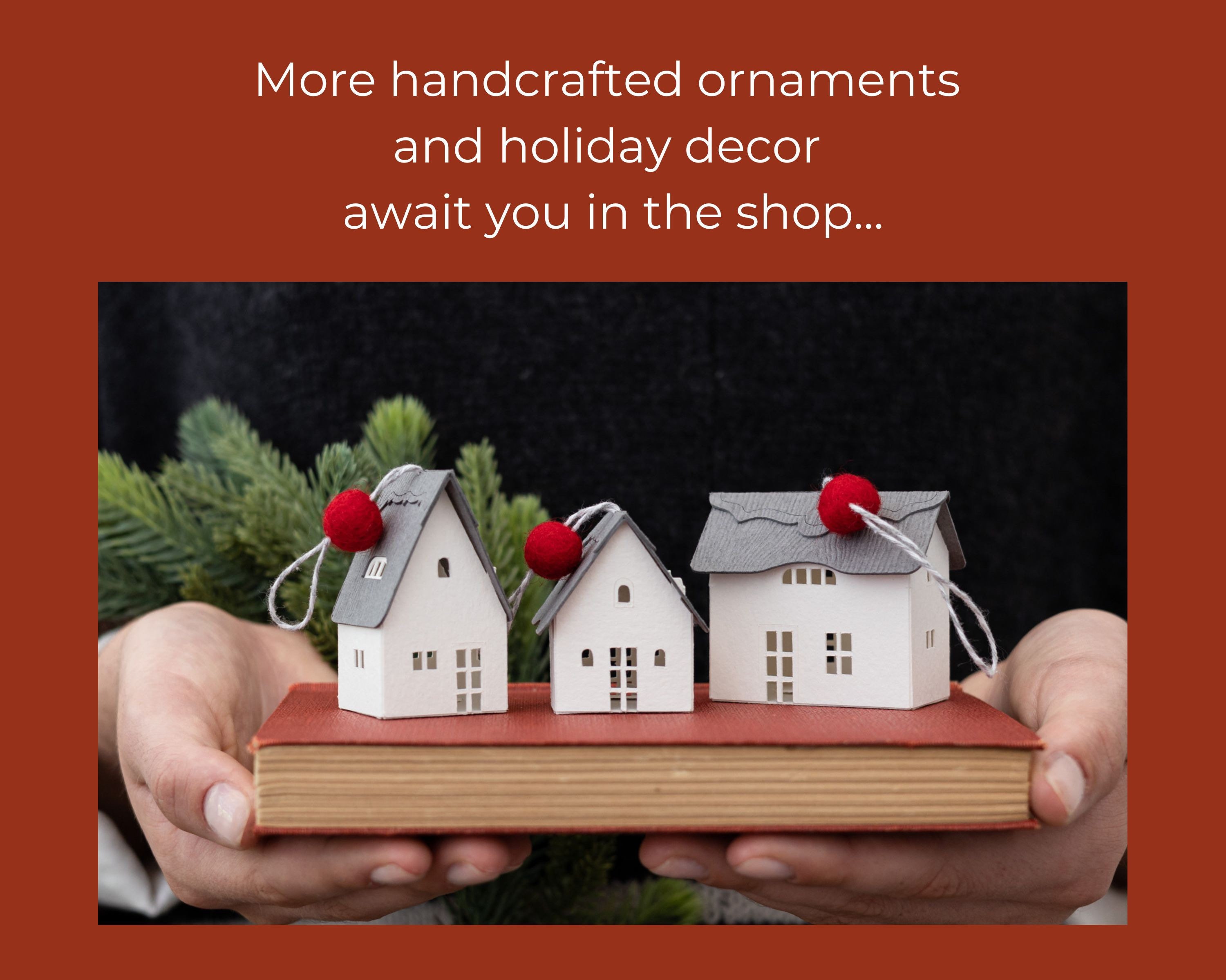 This is my first Christmas purchase from this shop, but it won’t be my last. I am very pleased with these ornaments; they adorn a kitchen cabinet and a dining room light fixture. I’ve bought many of Anne’s Halloween houses so I knew the quality that I was buying. If you like handmade items that are well-designed and well-made, you should consider this shop. Shipping is fast and opening her boxes is an adventure.