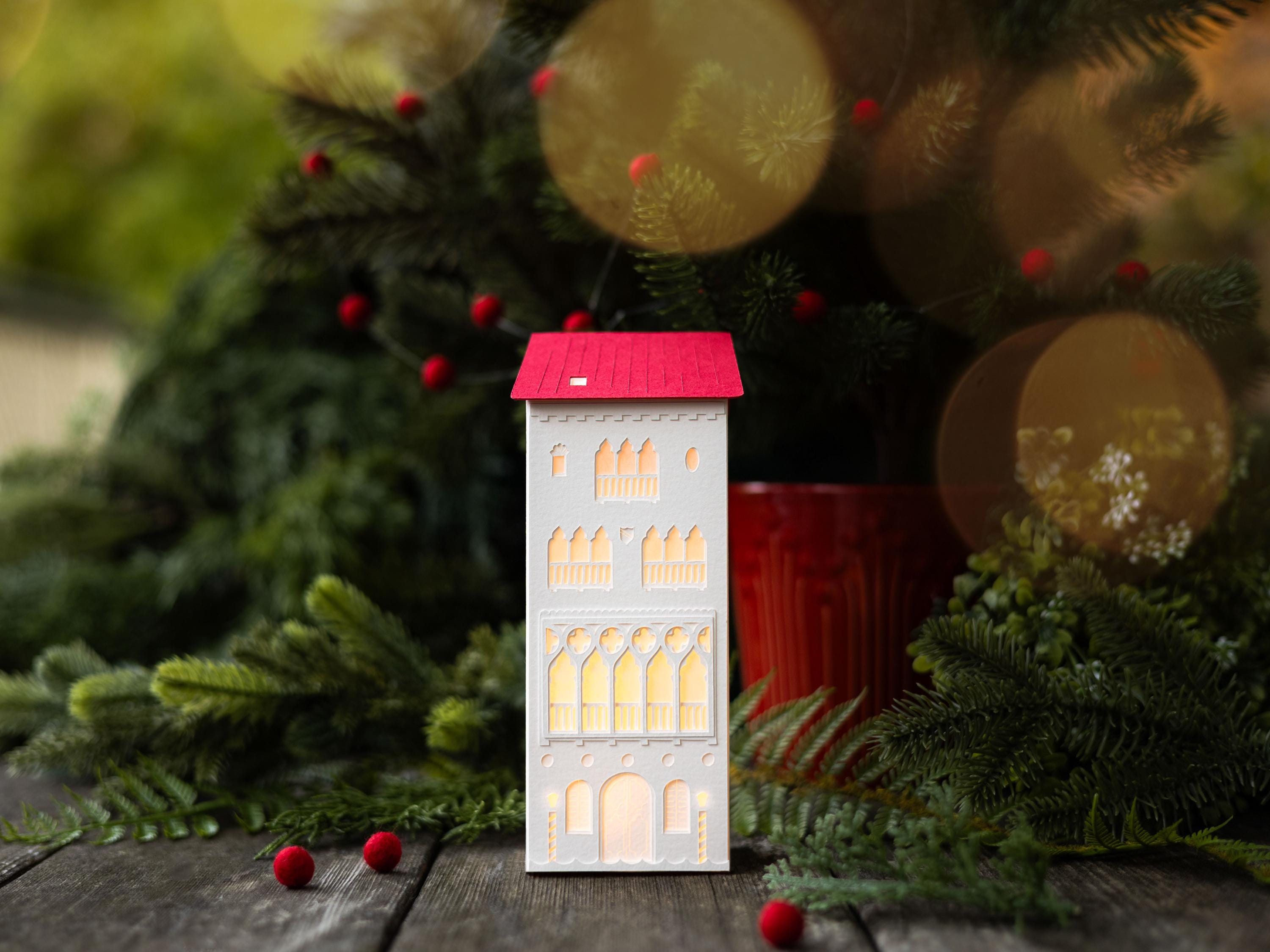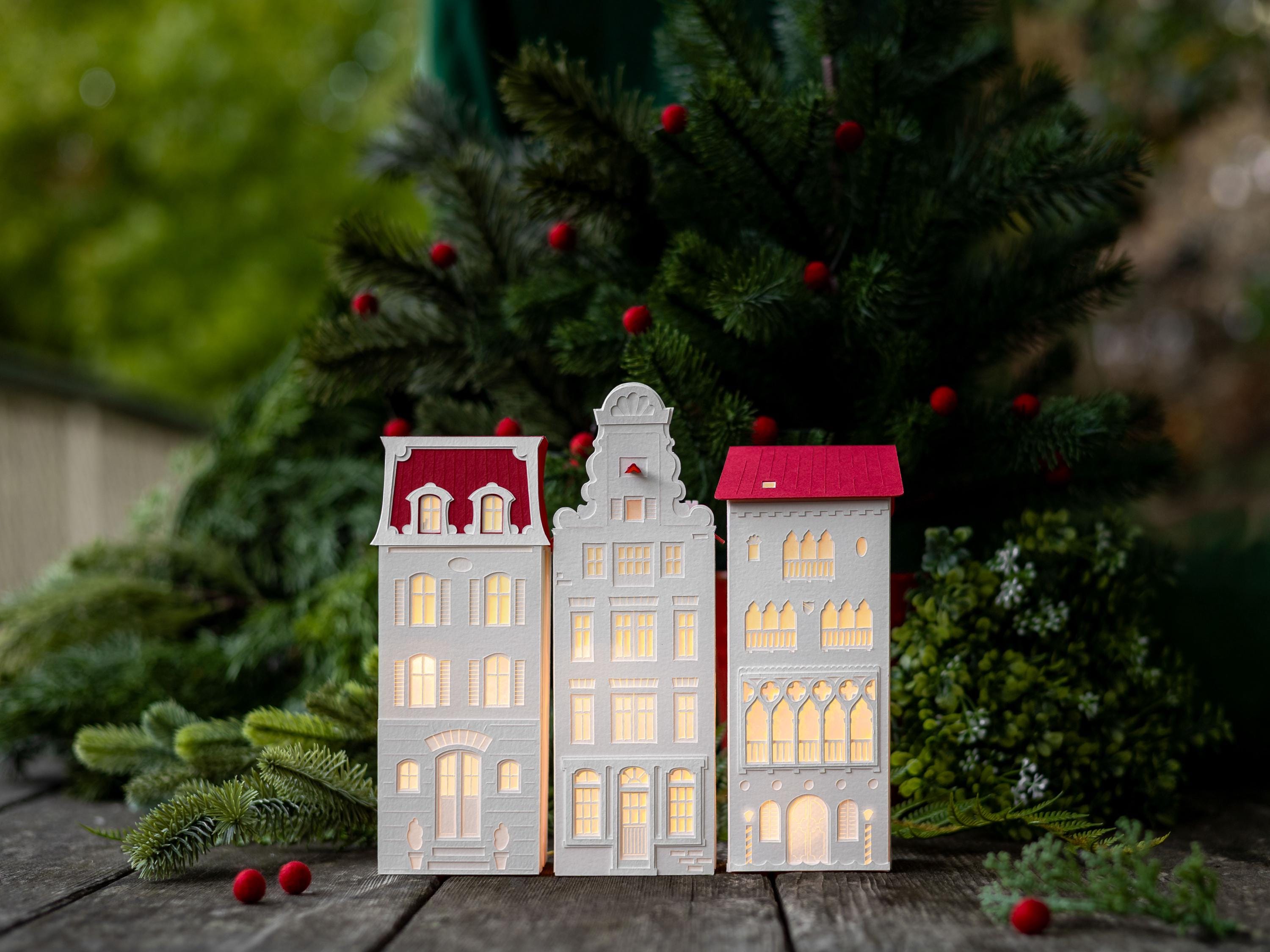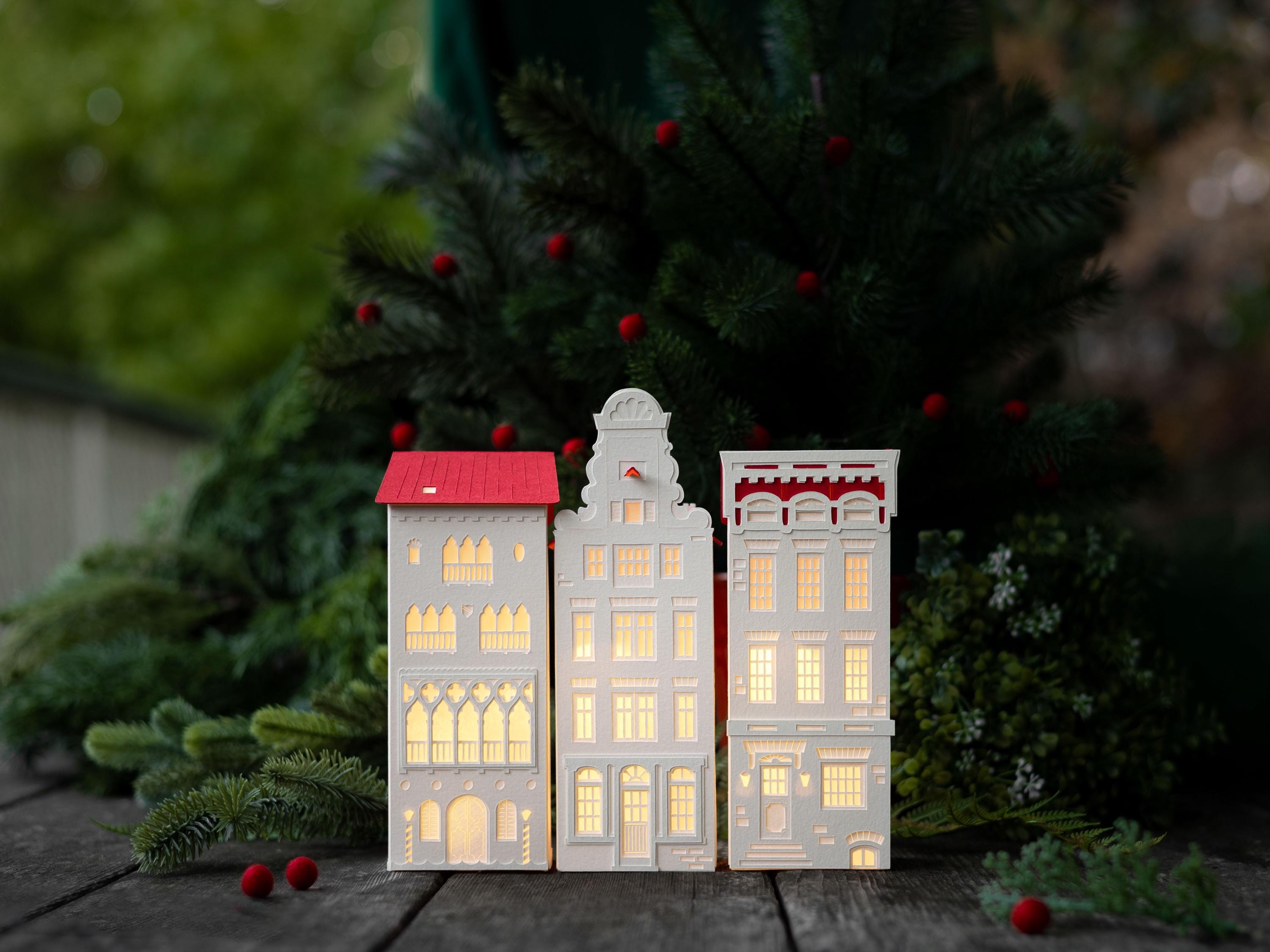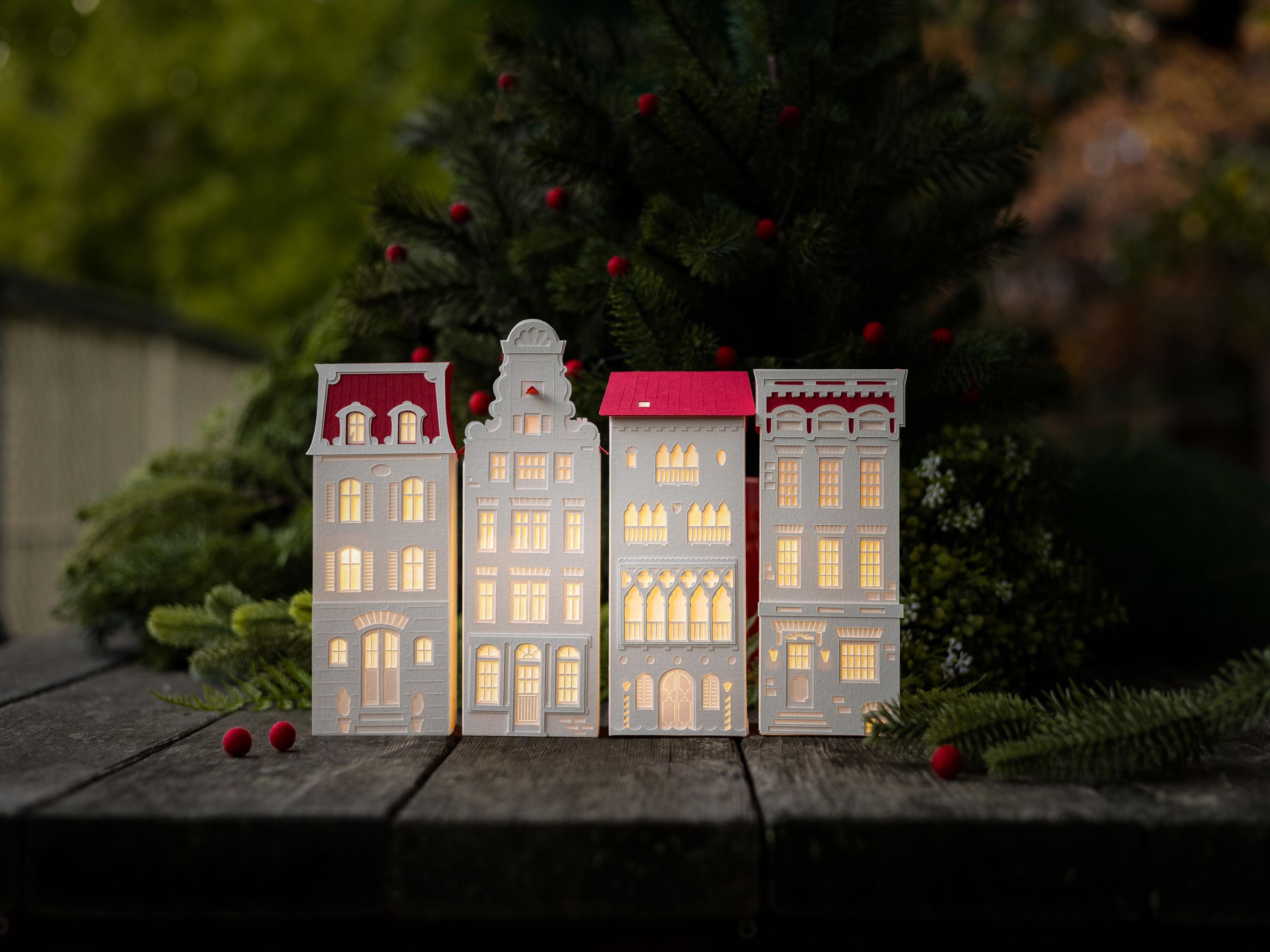With this mighty paper for a foundation, my buildings are designed to last for years. And unlike ceramic or wooden Christmas villages, these resilient paper lanterns are more likely to survive an accidental fall from a mantel, or from curious little hands.