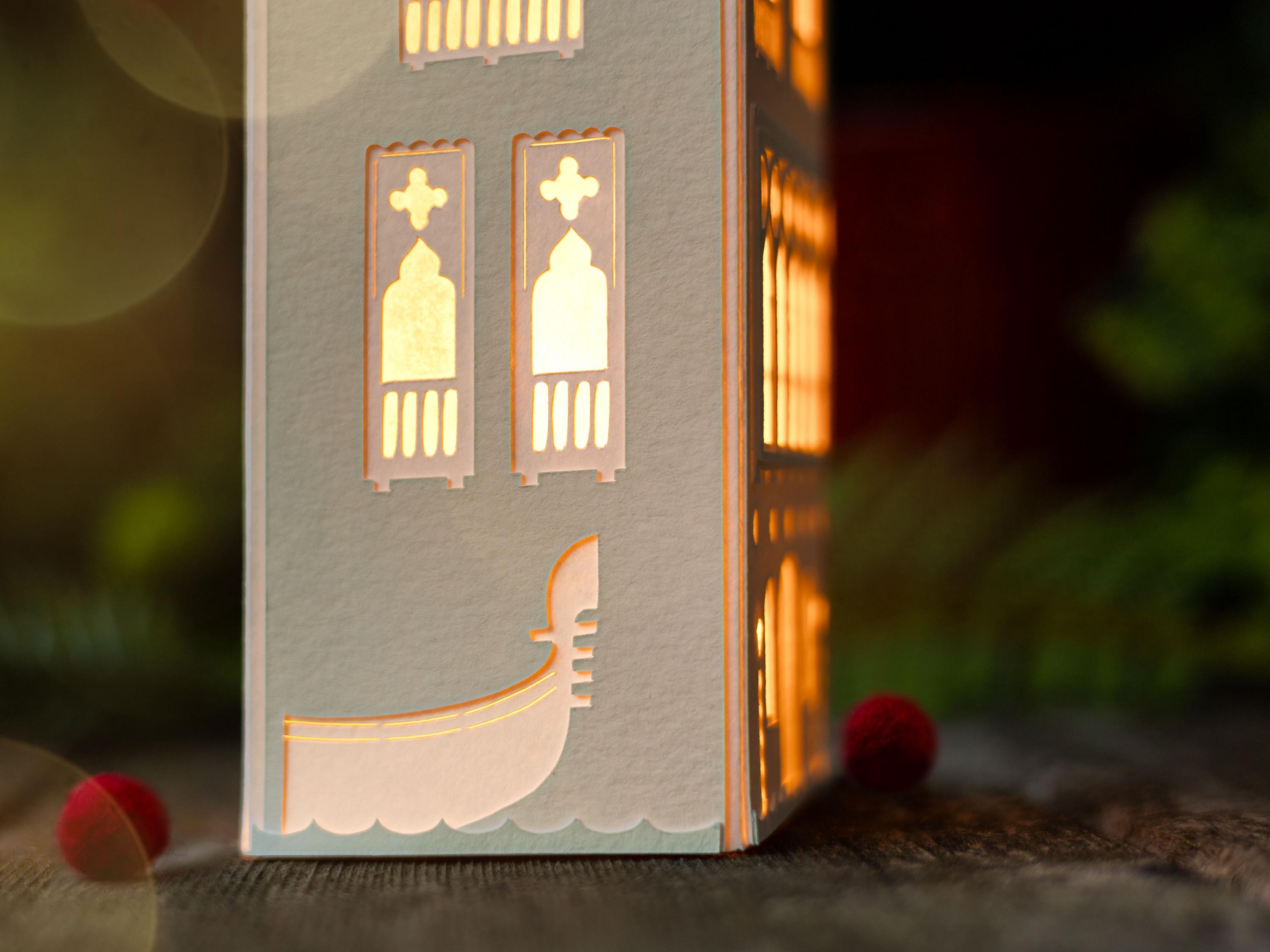 Belgian Paperworks luminaries celebrate the artistry of paper and light. Handmade from strong, beautifully textured watercolor paper, these heirloom pieces delight with intricate details by day, and enchant with a magical glow when lit — illuminated treasures that fit in the palm of your hand.
