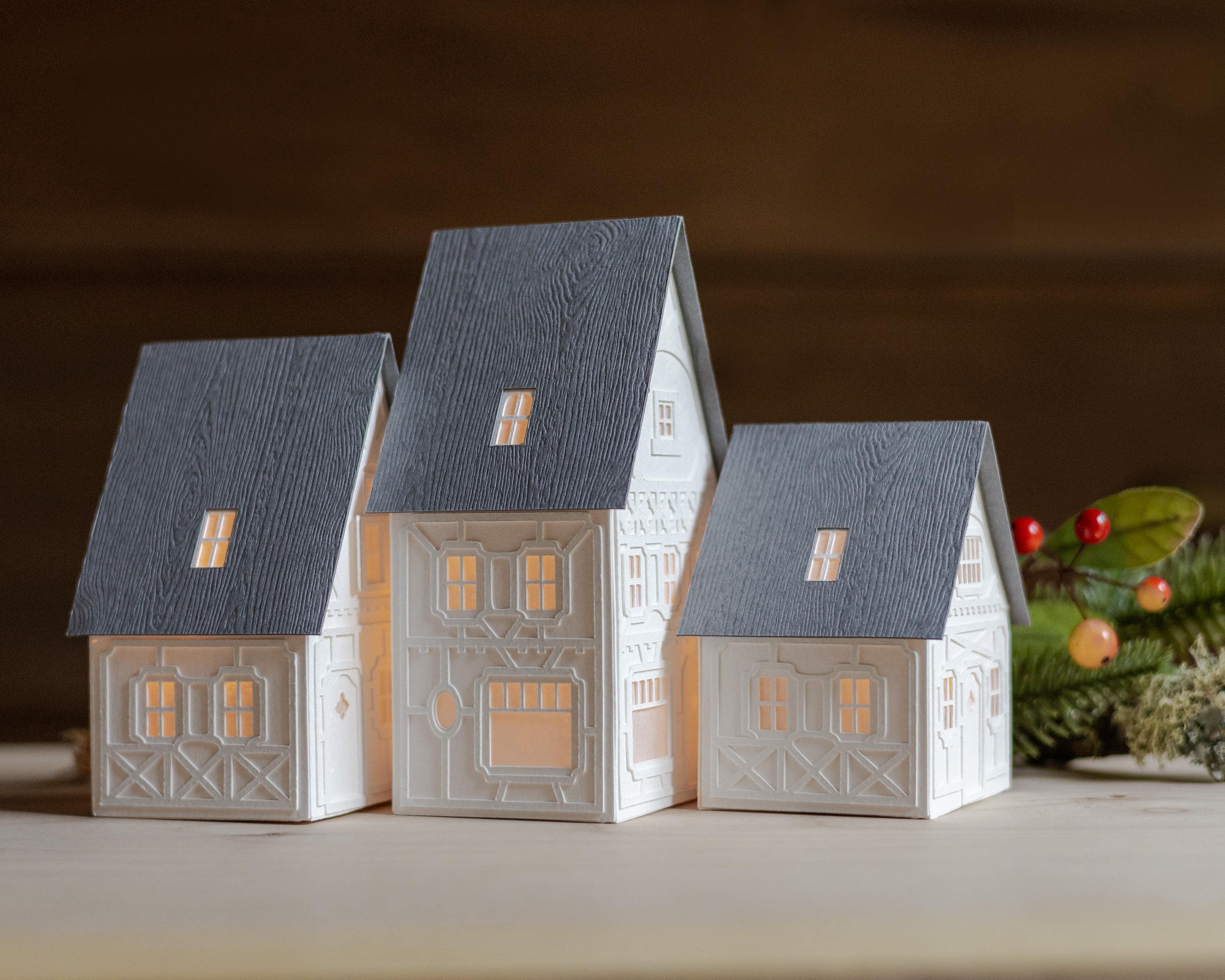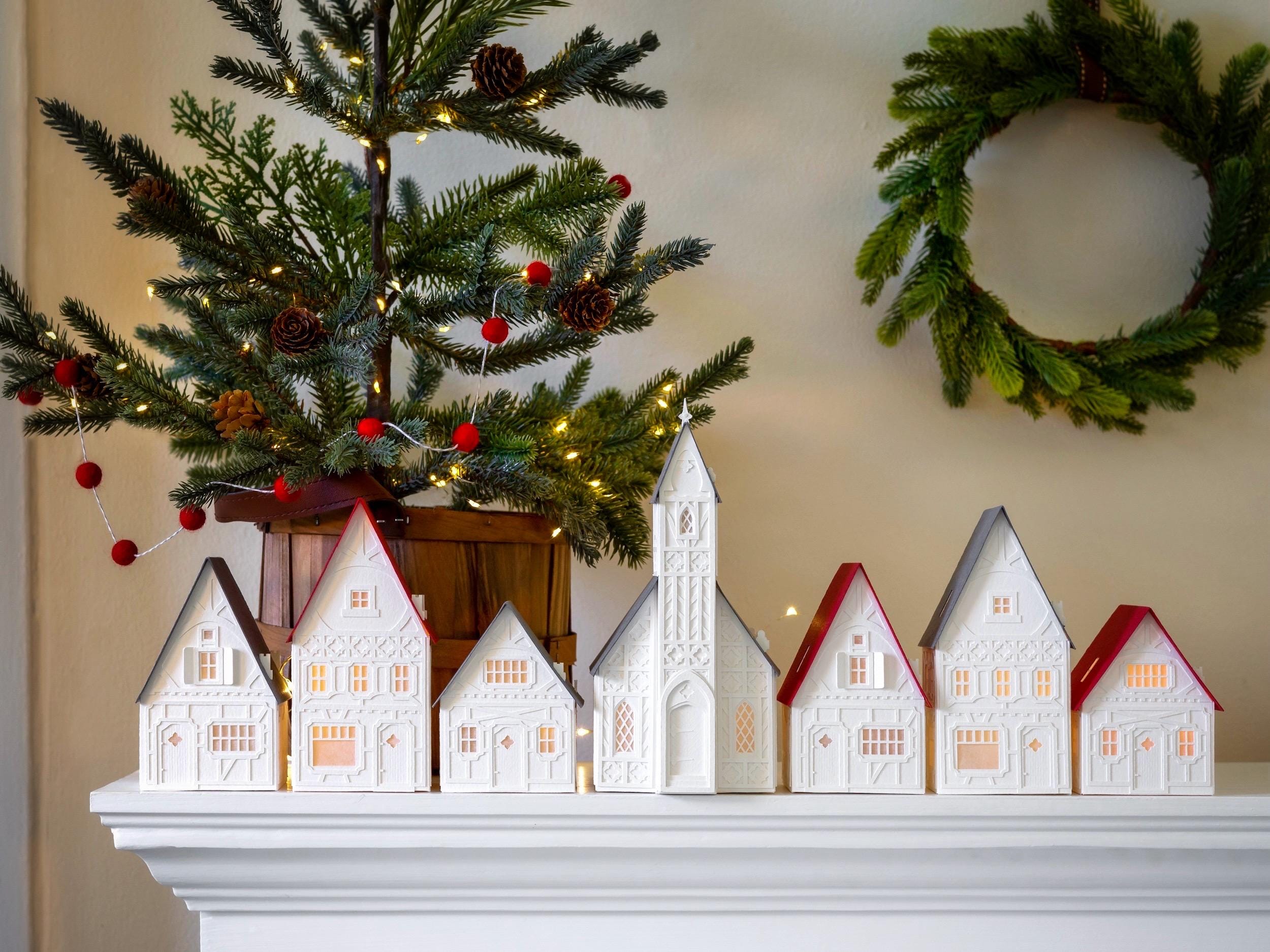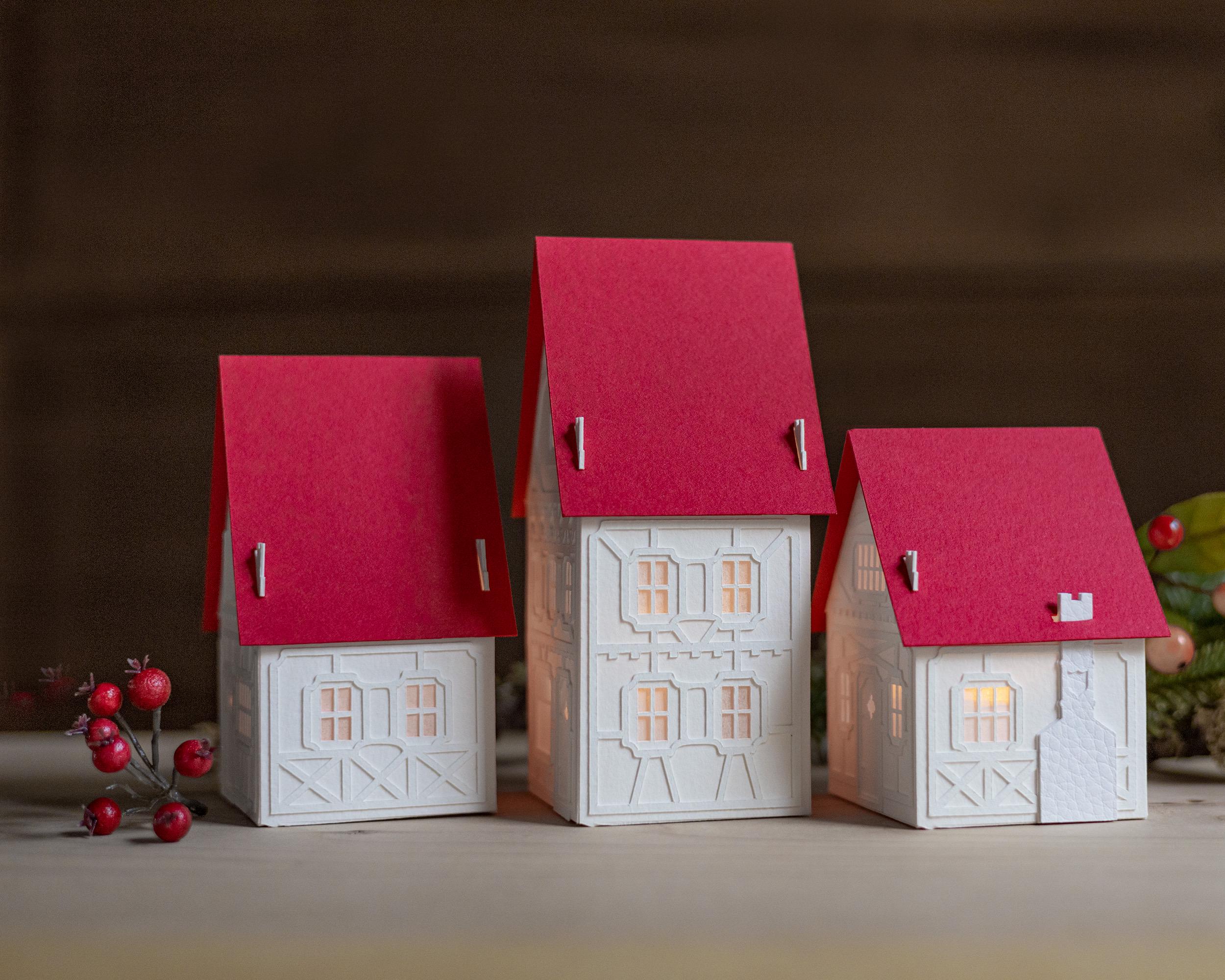 With this mighty paper for a foundation, my buildings are designed to last for years. And unlike ceramic or wooden Christmas villages, these resilient paper lanterns are more likely to survive an accidental fall from a mantel, or from curious little hands.
